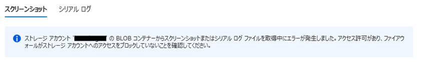 ブート診断の画面が表示されず、下記のようなメッセージを確認された場合、ストレージ アカウントのネットワーク設定を一度確認することをおすすめします。
